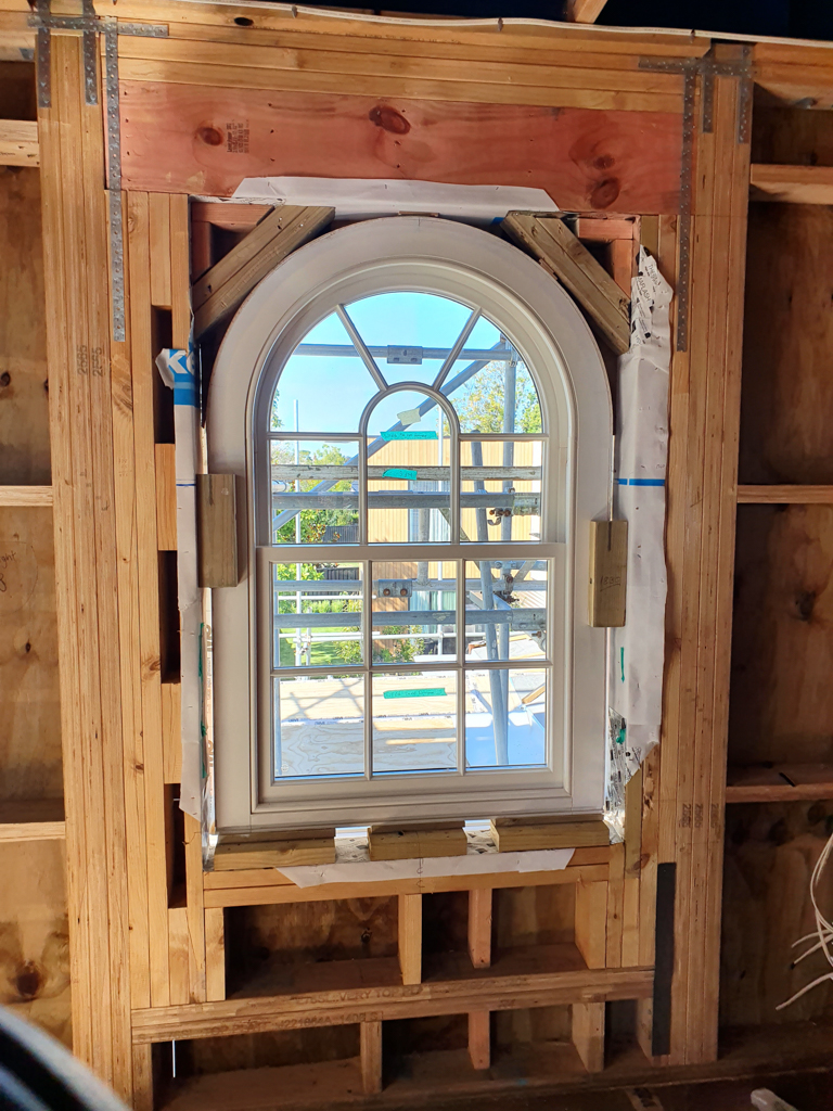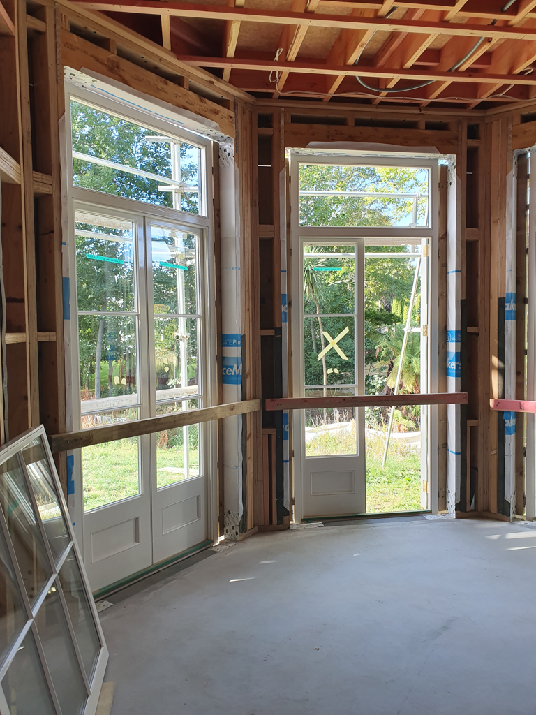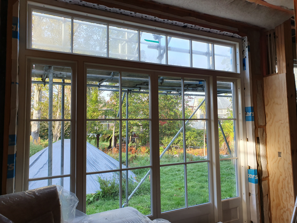 Timber framing around French style windows are also a project that we are manufacturing for our client. We are manufacturing the timber framing around the windows to a high-standard, while adding customised detailing to add texture and elegance to the framing. This project has rectangular framed windows across the bottom floor, curved framing across the second storey and smaller rectangular windows on the conservatory level.
