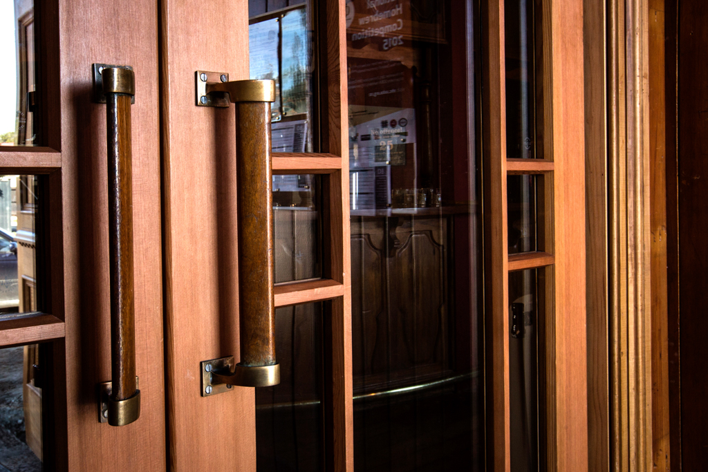 These large entrance doors have been carefully refurbished and painted black to provide a striking entranceway to the bar. The result ensures that the doors fit in with the client’s vision and the vintage look of the building.